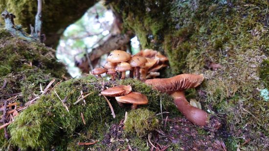 キノコの家族でしょうか。太い枝の上で居心地がよさそうです。