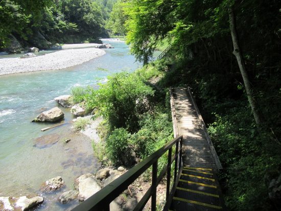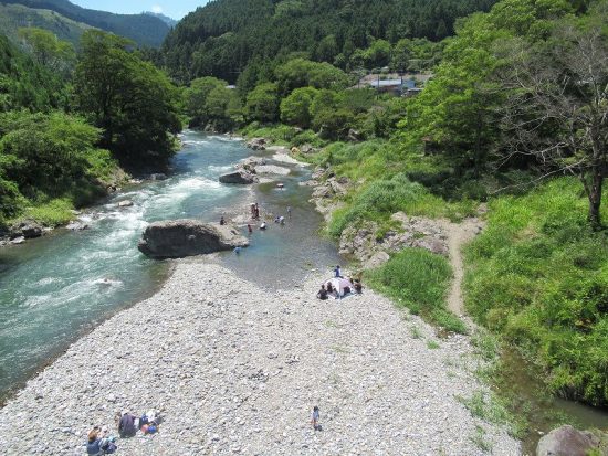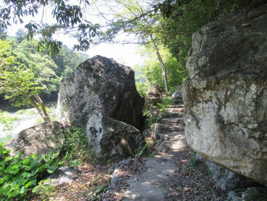 御岳渓谷は多摩川に沿って遊歩道が整備されています。涼し気な渓谷美を見ながら散策しました。