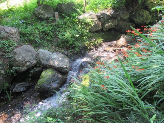 所々にオレンジ色のヒオウギズイセンが咲き、夏を感じさせます。