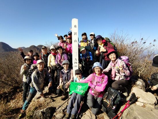 水沢山行中、地元の方が、「足慣らしによく登るよ」と言われていましたが、ネットを見ていたら、上級者が良く足慣らしをするそうです。「水沢観音」側は全コースにロープが張ってある中を軽く抜いてゆくのを見て納得です。距離は短く、標高も高くはないが傾斜のキツイ山でした。怪我人もなく無事に終えられて本当に感謝です。参加リーダー、協力者の気配りと皆さんの慎重な歩きのお陰と思います。ありがとうございました。