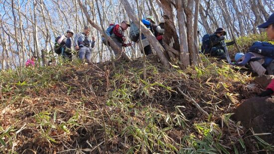 百名山達成のかなり&楽しい忘年会等、随分お世話になったのに、ご無沙汰してしまいました。今回は役員退任お疲れ様でした、申し上げたく参加しましたが、貴兄の会員への想い変わることなく、楽しんで貰うための心身向上励んでいる結果の筋肉充実に小生の怠け心は刺激を受けました。小生も85歳までは山行出来るように頑張らなくちゃと思いました。いつまても、目標の大先輩、感謝です。今後も宜しくお願いします。