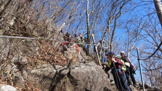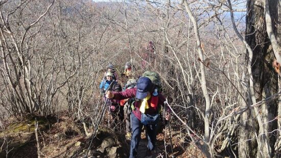 加藤様。忘年山行には大変お世話になりました。両山共に、あのように歩きづらいとは思いませんでした。榛名富士上りはロープウェイ組に分かれて登りました。下山は傾斜と荒れた道に時間を取られました。反省点はロープウェイ組を早く下山させるべきでした。水沢山は、電波塔過ぎたあたりから傾斜もきつく細くなりましたが、補助ロープに助かりました。水沢観音で時間を取れなかったのは残念でした。好天気と展望。緊張感のあるコース。適度な距離は良かった思いました。加藤様にはもの足りなかったと思います。一方、忘年山行はもう少し軽くと言う声もありました。結果として、怪我等トラブルなく終えられて感謝です。ホットした後のビールと水沢うどんの食感も良かったと思います。お世話になりました。また、ありがとうございました。佐々木保