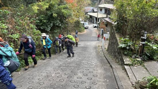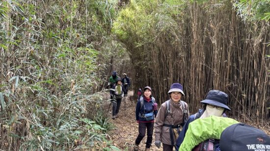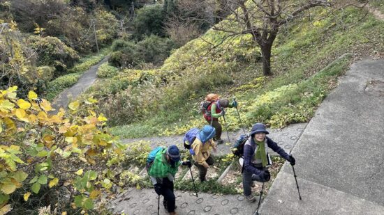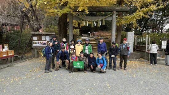 最初は「峯山」「うさぎ山」といった、どこがピークか分かりにくい低山を歩き、後半は「葛原岡神社」の見事な黄葉の大イチョウの下で集合写真を撮影しました。そして、「浄智寺」や「東慶寺」の紅葉も楽しむことができました。