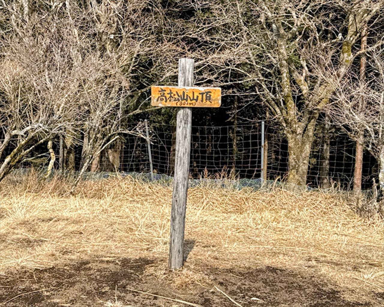 高松山山頂の標識。下見山行の時には、確かにありましたが・・・・なぜか、見つかりませんでした・・・。