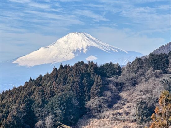 最明寺史跡公園から尺里峠までの路の絶景スポットでの富士山。