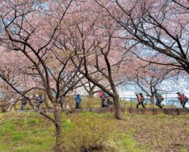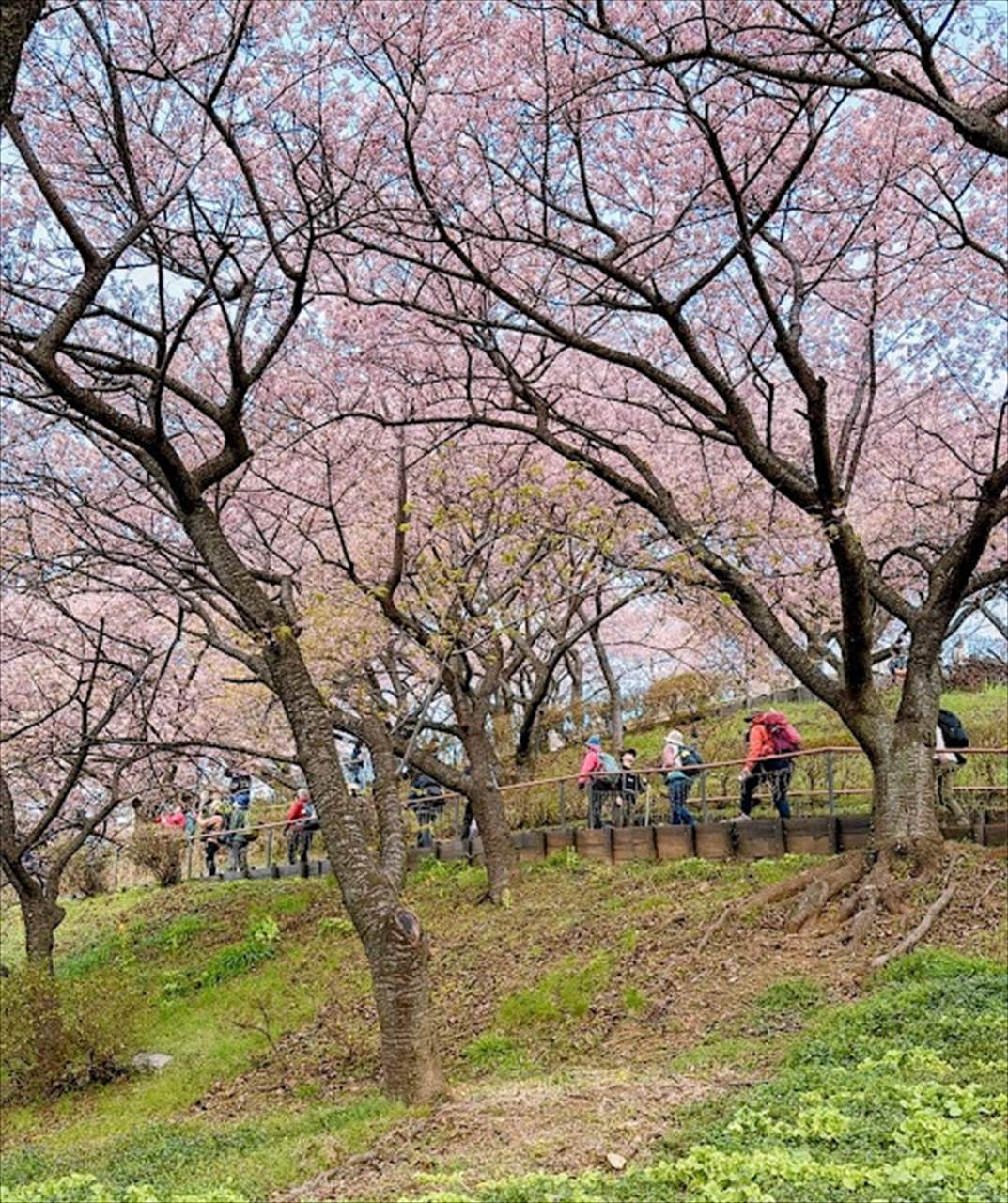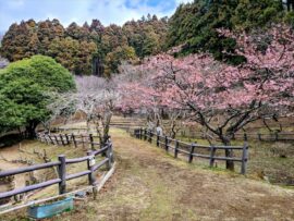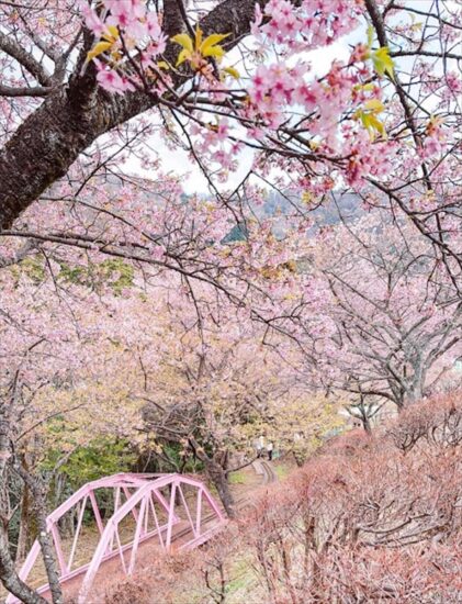 西平畑公園では、約360本の河津桜が見頃を迎えていてまつだ桜まつりが開催されていました。