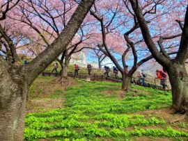 西平畑公園では、たくさんの河津桜や、彫刻、お雛様、そして、真っ白な雪を被った雄大な富士山を間近に観ることができ幸せでした。