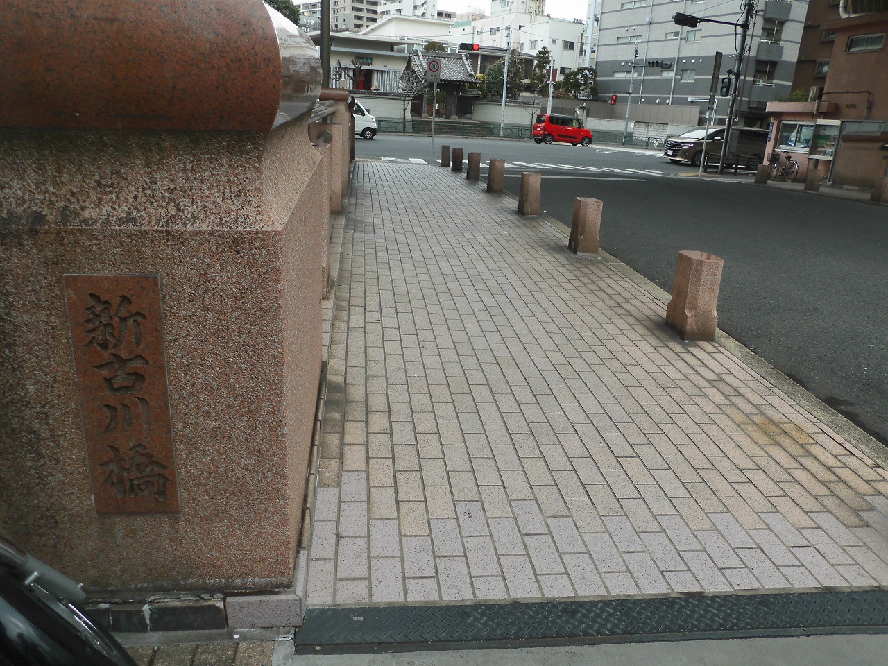 新古川橋(昭和10年3月架設、長さ16.2m、幅11.5mの鋼橋。古川にかかる。平成元年3月架け替え。)