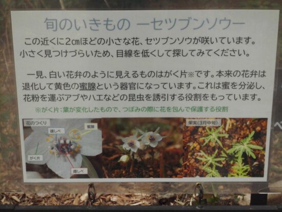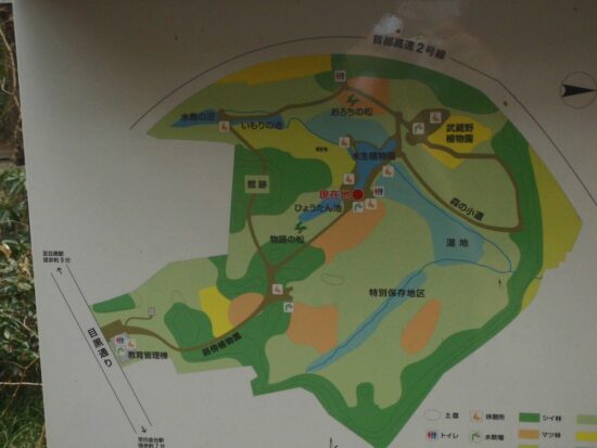園内にはコナラ・ケヤキ・ミズキなどの落葉樹、スダジイ・カシ類・マツ類などの常緑樹が広がり、ススキやヨシの草はら、池や小川などがあります。このような自然を活かした植物園が整備されており、四季にわたって様々な草花や、昆虫などの生きものを身近に観察できます。
