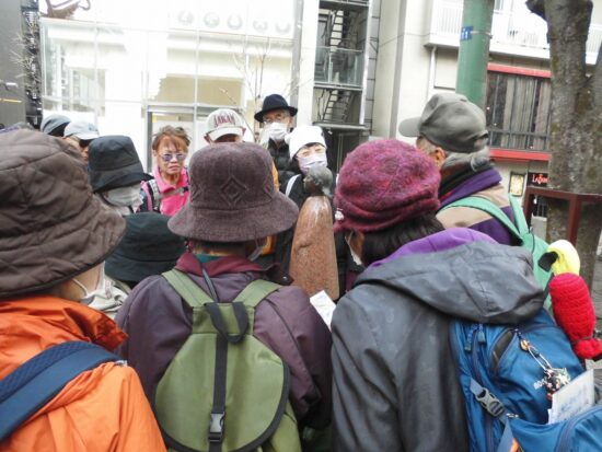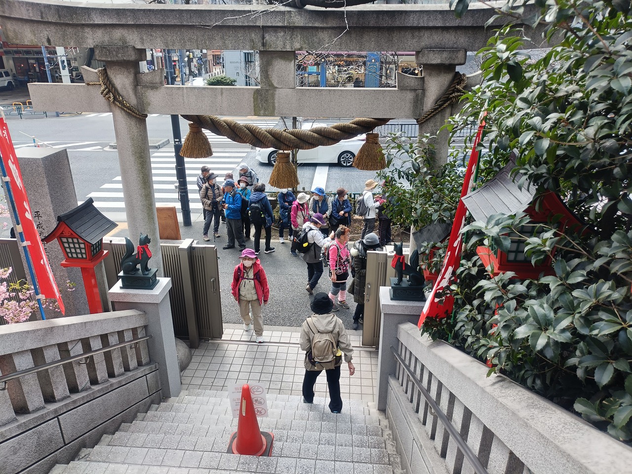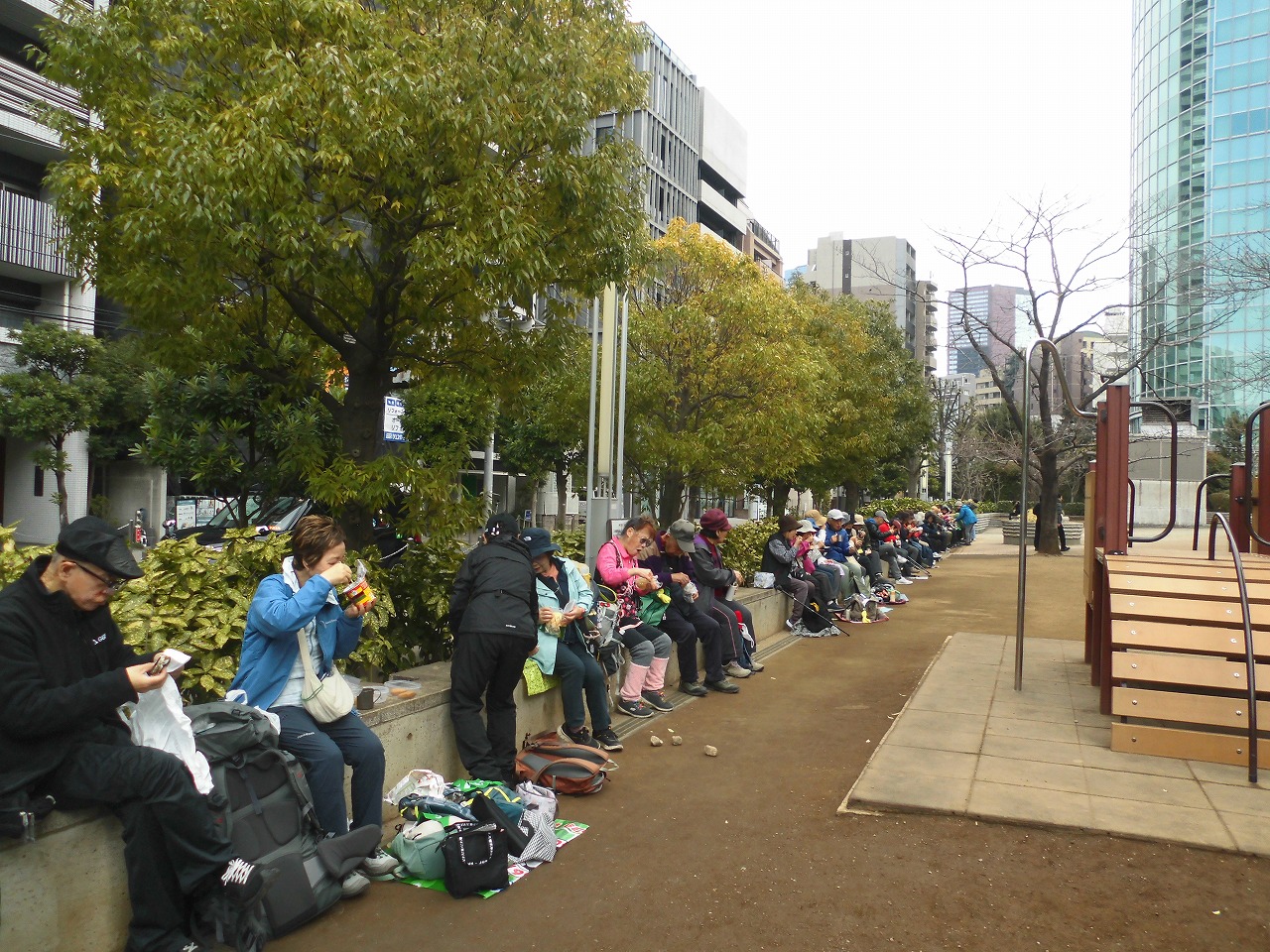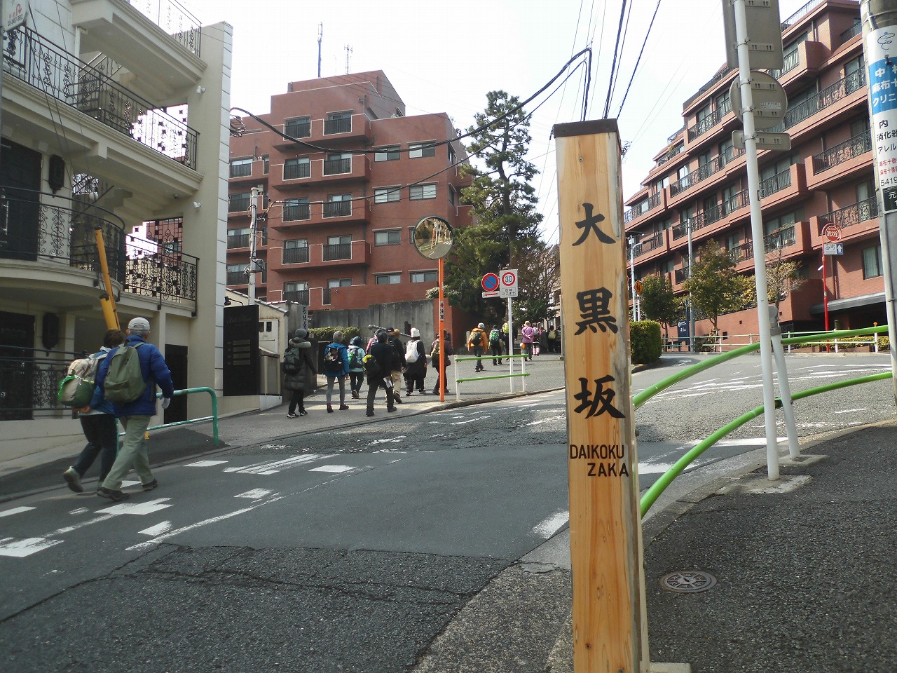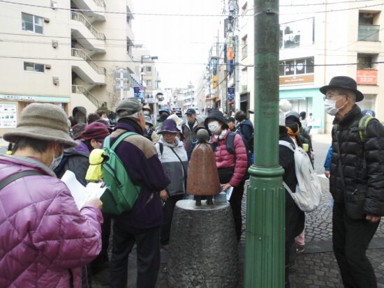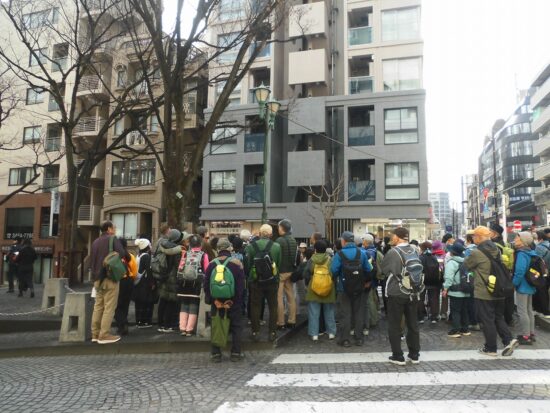 天気予報では暖かく春一番が吹くかもとか言ってましたが、風が冷たく日陰ではうすら寒いぐらいの感じでした。50名の参加者のパワーでなんとか冷たい風に打ち勝ち完歩しました。最後は会報に載せたコースを変更してショートカットでJR目黒駅に向かい解散しました。大勢の会員の皆様に参加して頂き感謝致します。                      岩間英之