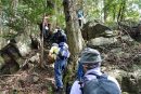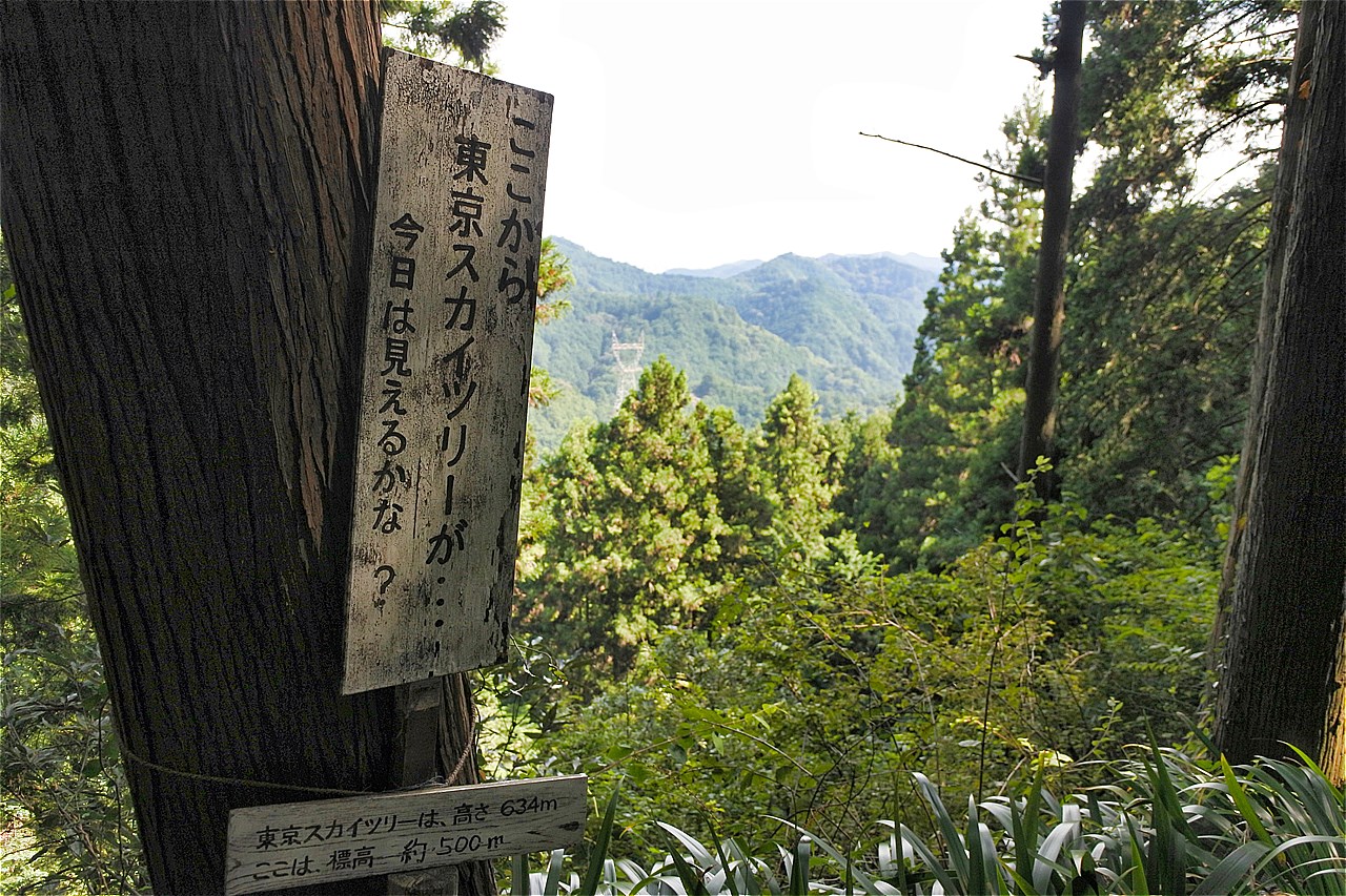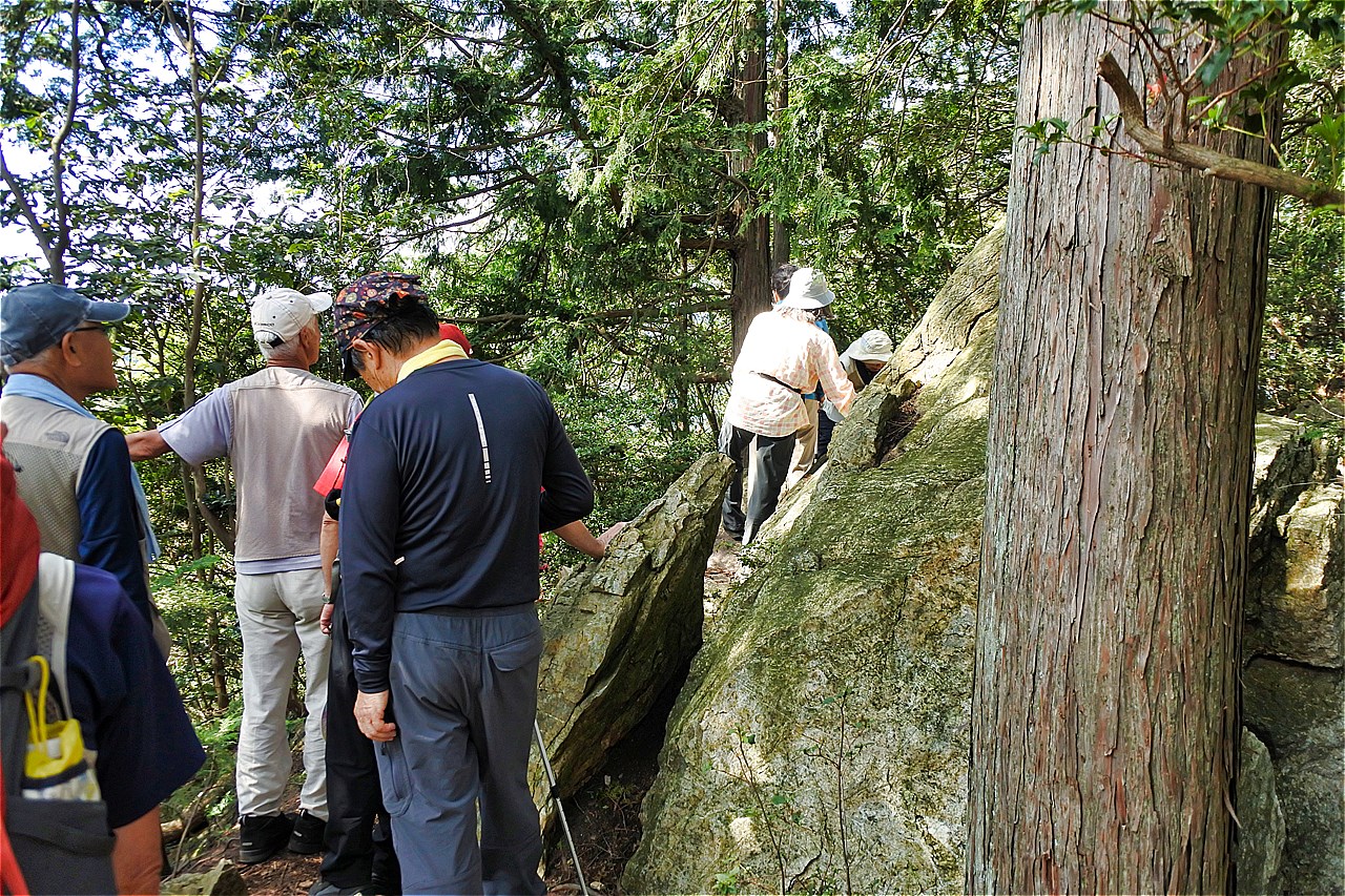 | スカイツリーは見えず。 | 越上山手前の岩場。 | 山頂で集合写真。 |
