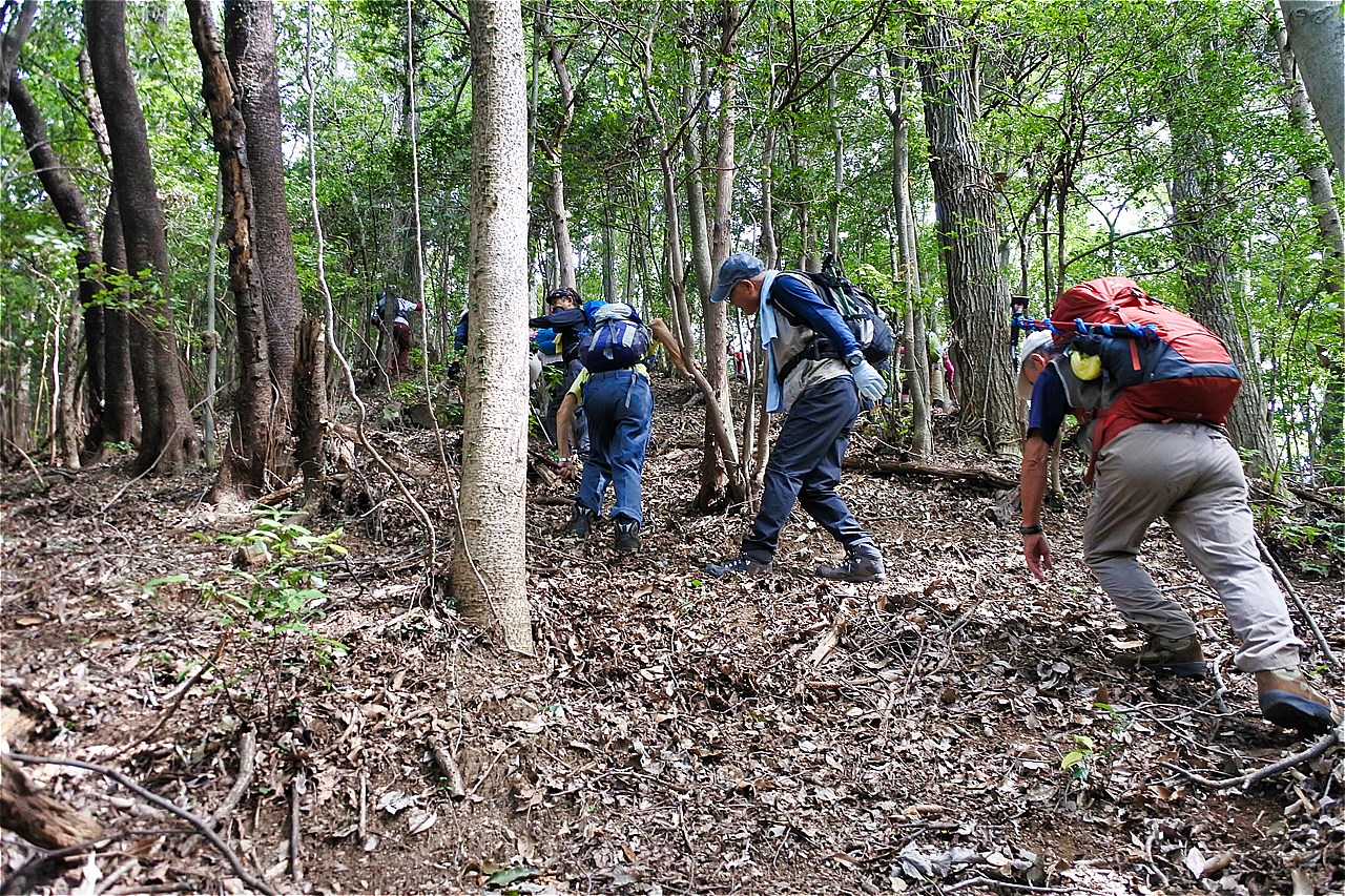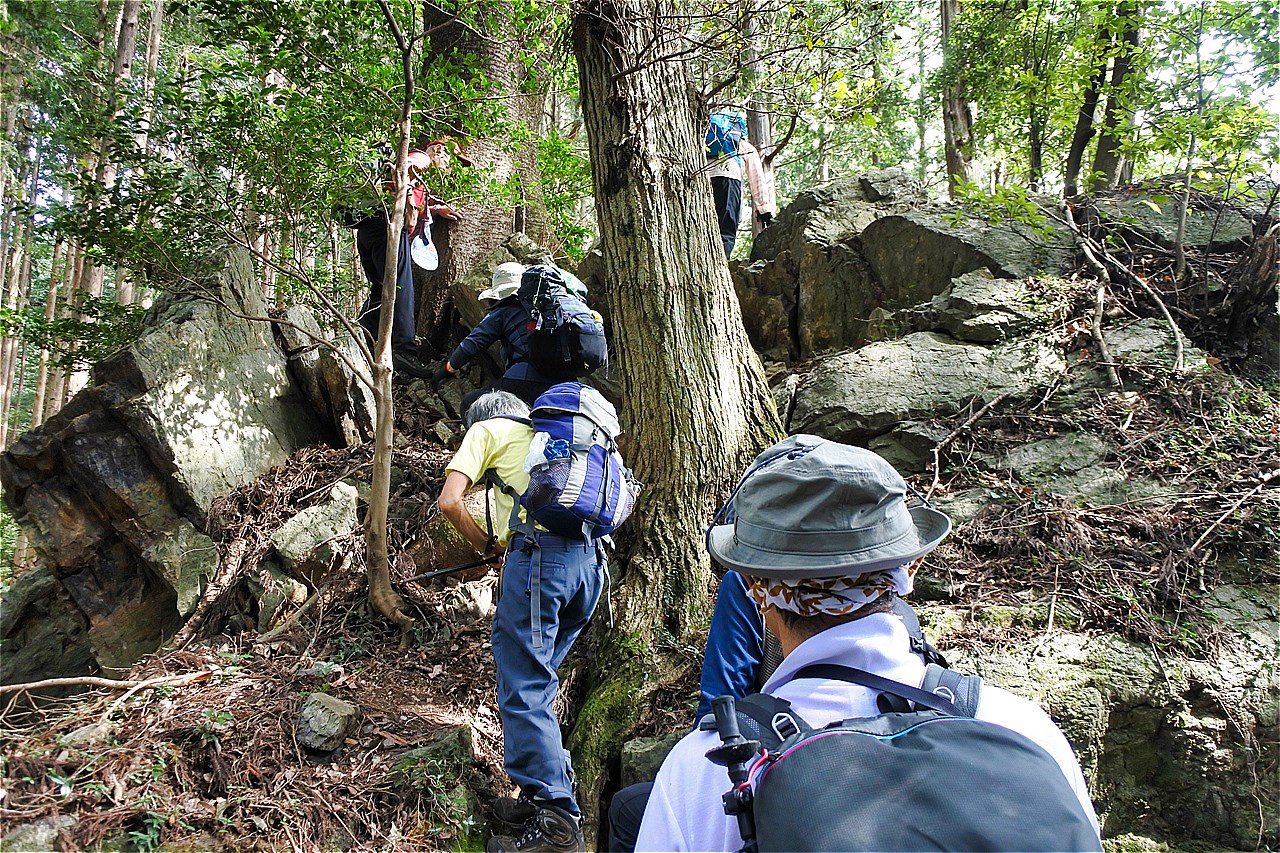 | 岩場を越える。 | 急斜面。 | 育代山。 |