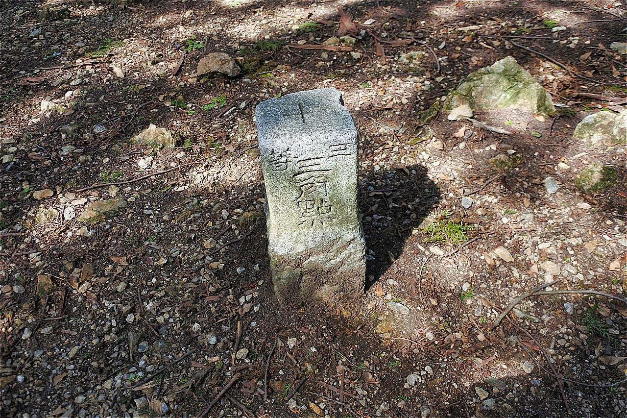 | 三等三角点。 | 分岐点に戻り進む。 | 林道を横切る。 |