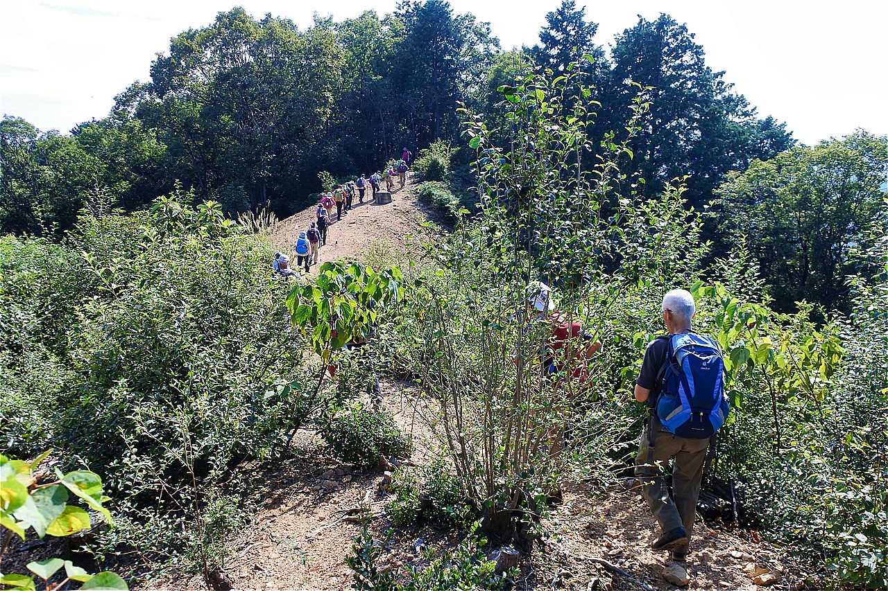 | リーダーコメント 前日 までの予報が悪く、決行に惑わされましたが、午後からは晴れ間も広まり快適な山行になりました。登山口から育代山のルートは、雑木が生い茂り、途中、直登の急斜面などありで大変でしたが、リタイアする者も無く、全員足並みそろえて完走しました。 皆さん、お疲れさまでした。 |