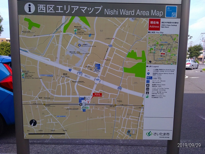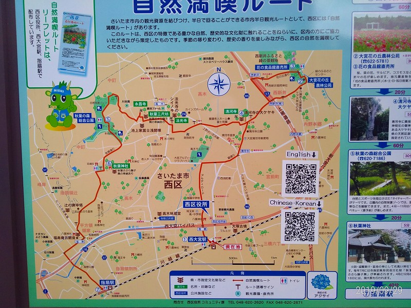 大宮西区の自然満喫ルート図・・・これから歩く花の丘農林公苑までのルートが分かりやすい。