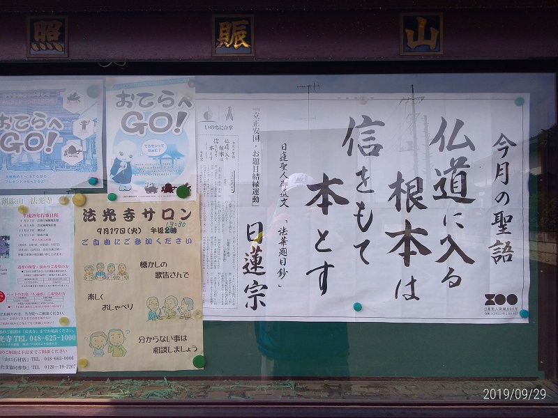 法光寺は、寛永二年(1625)年に亡くなった、山内康豊(高知県土佐にある中村城の城主で山内一豊の弟)の菩提を弔いたいという、家臣の高村権之丞の願いにより建立されました。日蓮宗総本山身延山久遠寺より善性院日有上人を開山に仰ぎます。山内康豊の法号である「法光院殿照円日賑居士」にちなみ、山号を「照賑山」寺号を「法光寺」と称します。