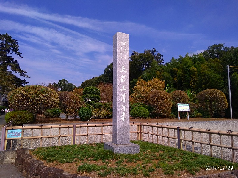 臨済宗円覚寺派寺院の清河寺は、大龍山と号します。清河寺は、関東管領足利基氏(法名清河寺殿玉山品[日升]公大居士、貞治6年1367寂)が開基、圓覚寺第三十八世勅謚佛慧禅師傑翁是英大和尚(永和4年1378年寂)が開山となり正平15年(1360)に創建、足利基氏の曾孫関東公方足利持氏の命により足利家の祈願所となったといいます。徳川家康が関東入国した天正19年には寺領5石の御朱印状を拝領したといいます。足立坂東観音霊場30番です。