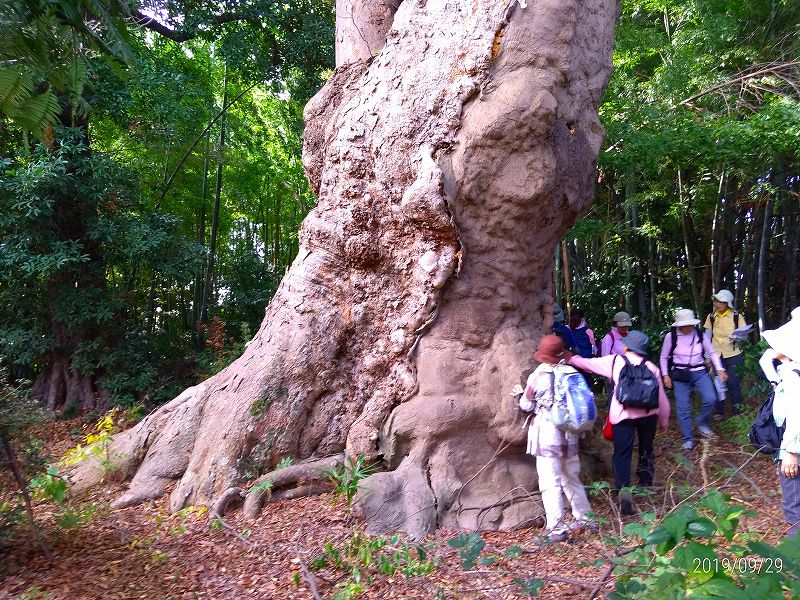 高さ32メートル、幹まわり8.5メートル、根まわり14.3メートル(指定時)に及ぶ巨木です。厚い樹皮におおわれたゴツゴツした木肌などから、長い年月を経てきた風格がただよっています。