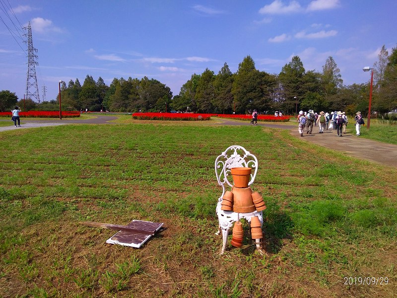 今回は、当初天気予報が悪く、実施について問い合わせもありましたが、徐々に良くなり多くの方に参加していただき有難うございました。会報では西大宮駅に戻るようになっていましたが、三貫清水や鎌倉街道など途中に見どころもありますので、高崎線の宮原駅まで歩くことにさせていただきました。目的のコスモスやサルビア、彼岸花など沢山の秋の花々を見ることが出き、予定のコースを楽しく歩くことが出来ました。参加されたました皆様方にご協力感謝申し上げます。