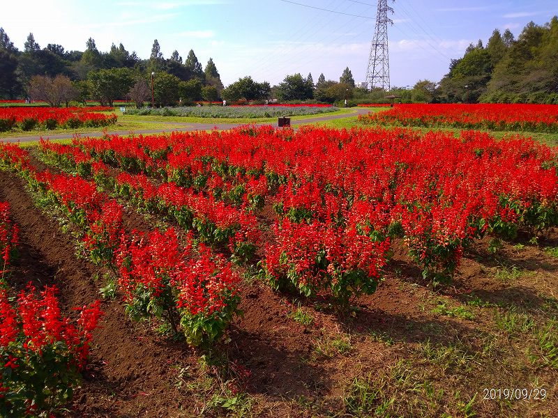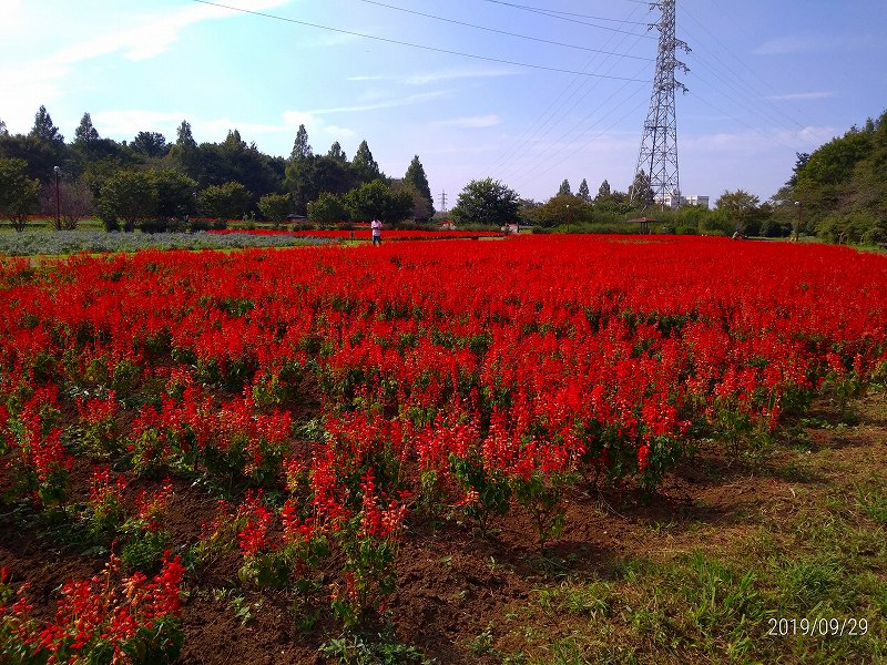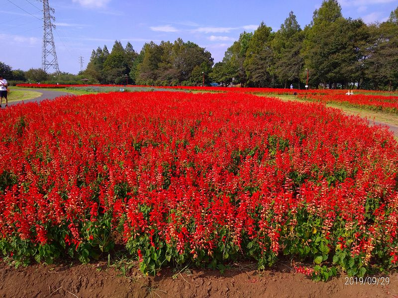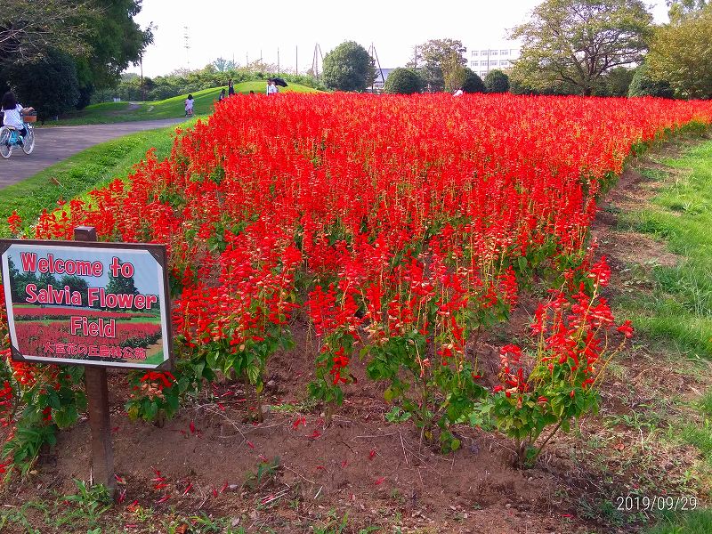 コスモスだけではなくサルビアも見頃、沢山咲いていた。