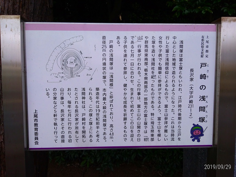 戸崎の浅間塚は、江戸時代に流行した富士浅間信仰によるもので、富士山参詣が難しいことから、女性や子どもでも簡単に参拝ができるように富士山を模した塚を祭る目的で造られました。ここで毎年7月1日(富士山の山開き)に行われる初山は、生まれて初めてこの日を迎える赤ちゃんと一緒に家族がお参りして、子どもの健やかな成長を祈願する行事です。 参拝に来た子どもの額と肌着の後襟の内側に祭主が赤いはんこを押しますが、このとき、ほとんどの子どもが大泣きしていました。そんなわが子を、そばで温かく見守る親の姿が印象的でした。
