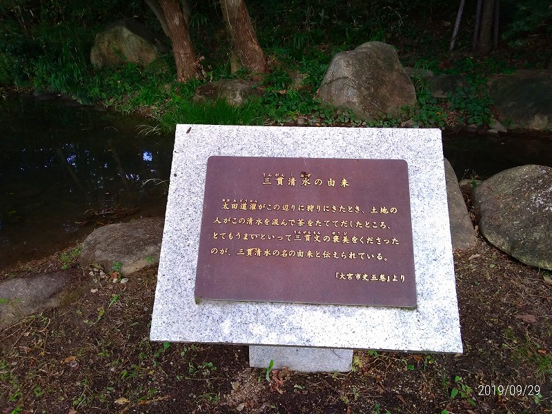 南側の沼地のほとりには三貫清水の石碑が建てられている「三貫清水」という名前の由来は・・・・