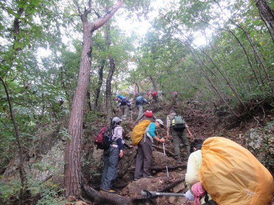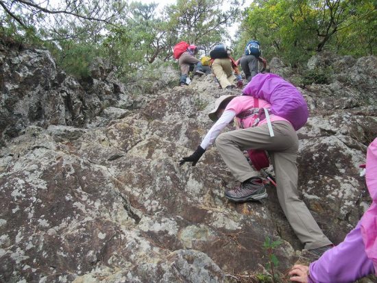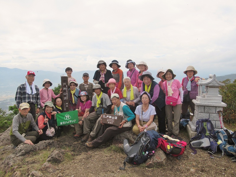 朝から不安なお天気でしたが、沼田に着く頃は快晴。三角錐を空に突き上げる戸神山は標高1000mにも満たない山ですが、アルペン気分が味わえる急勾配の岩場です。昔取った杵柄がものを言ったのです。皆頑張って登頂しました。翌日は尾瀬の草紅葉に満喫(ガイド付き)ヴィラ風花の食事とお風呂に満足。楽しい2日間を過ごしました。