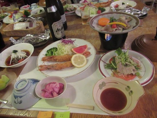 18:00 夕食 宿泊先のヴィラ風花に付く前に雨が降り始め、この時間は本降りの雨となった。