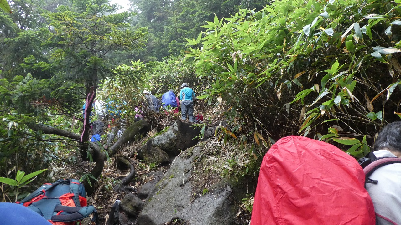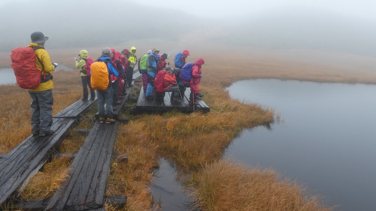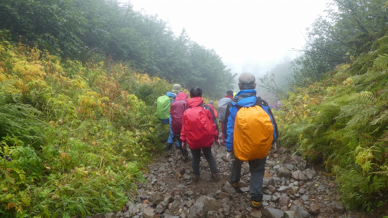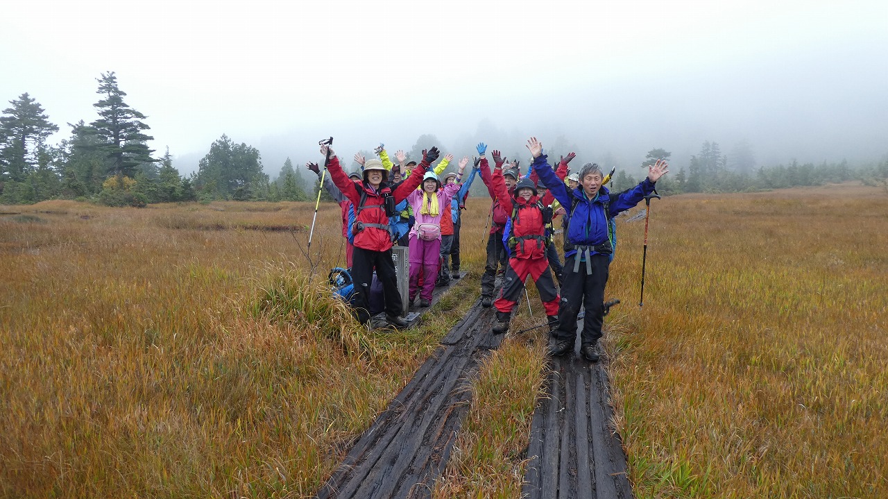 いつもの滑りやすい木道&ガレ場に加えて田んぼ&沢状態の悪路、参加者の脚と気持ちが揃って全員無事下山、記憶に残る山行でした。感謝です。