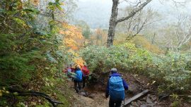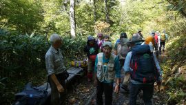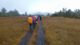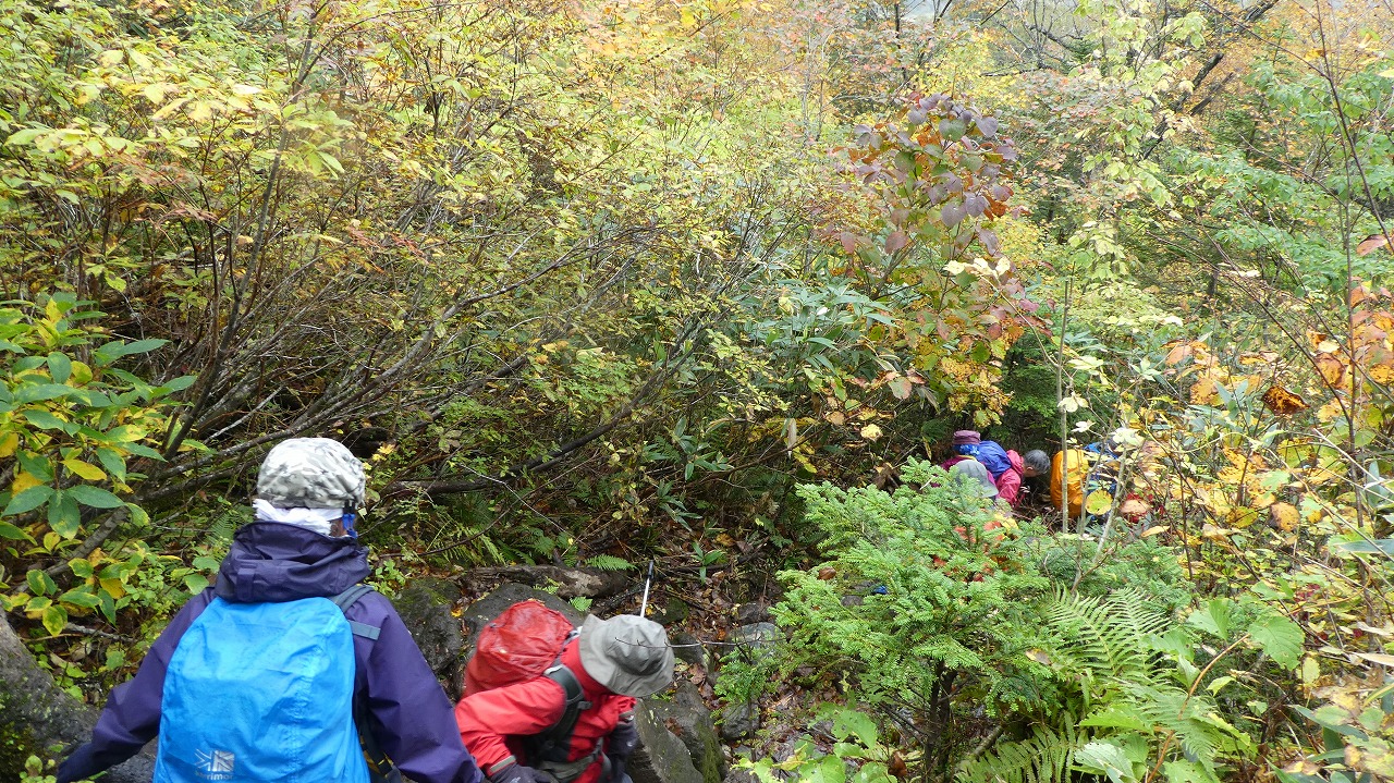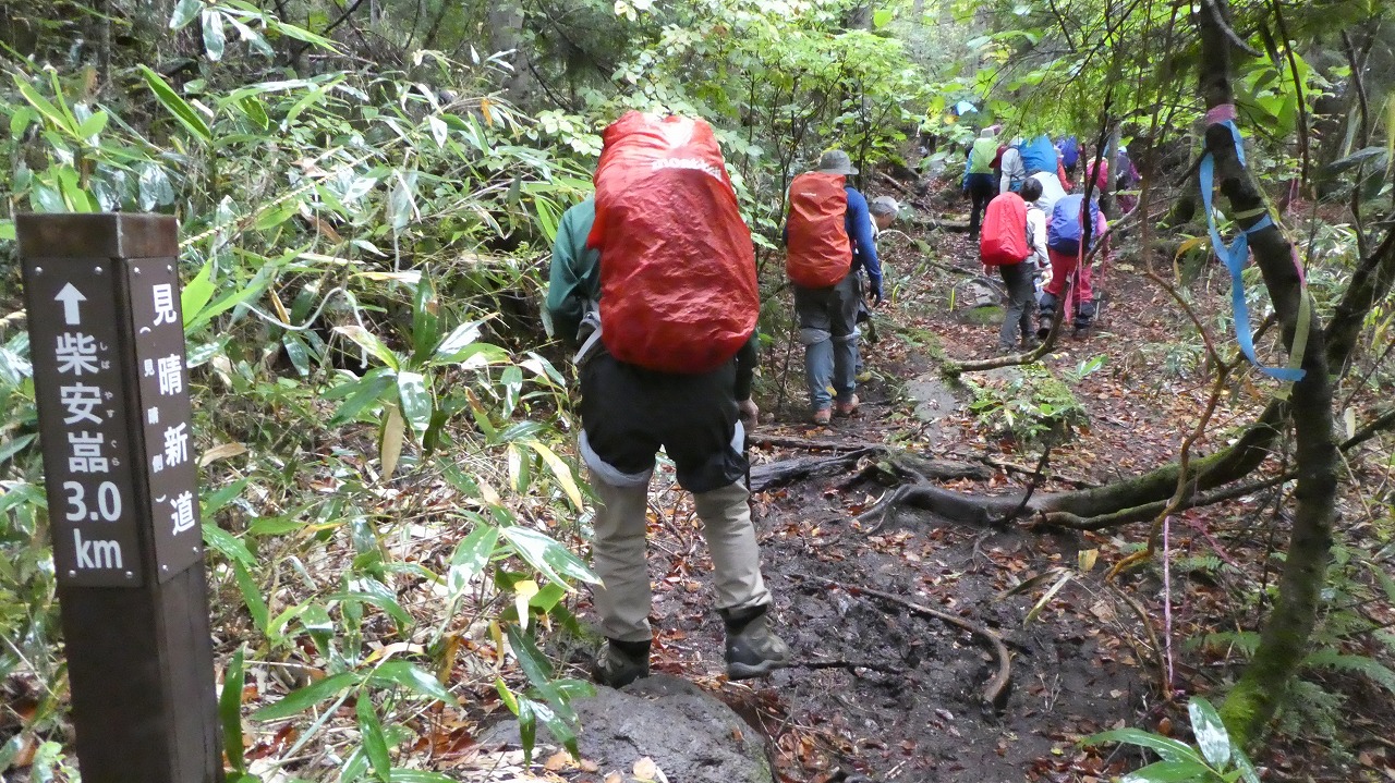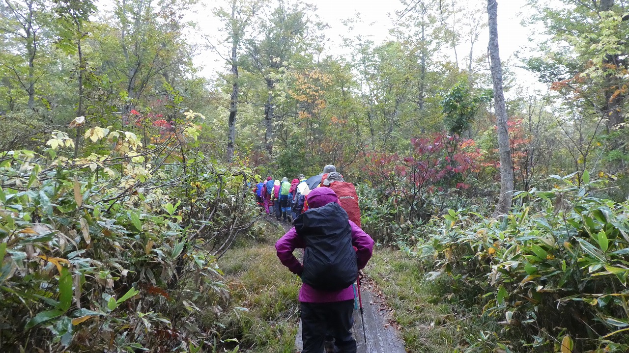 いつもの滑りやすい木道&ガレ場に加えて田んぼ&沢状態の悪路、参加者の脚と気持ちが揃って全員無事下山、記憶に残る山行でした。感謝です。