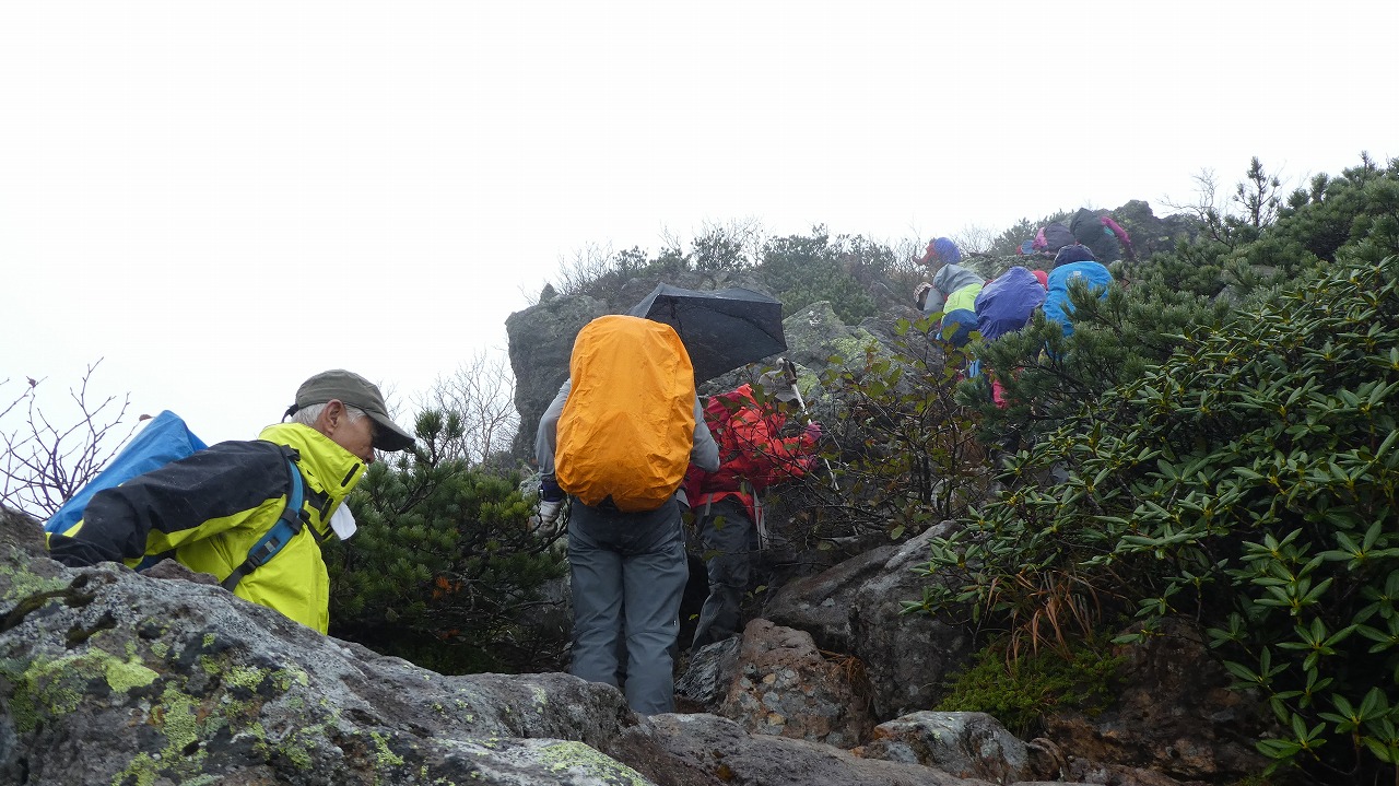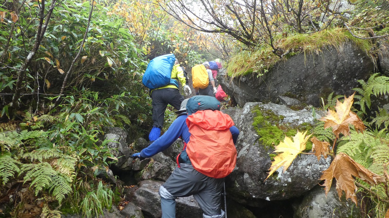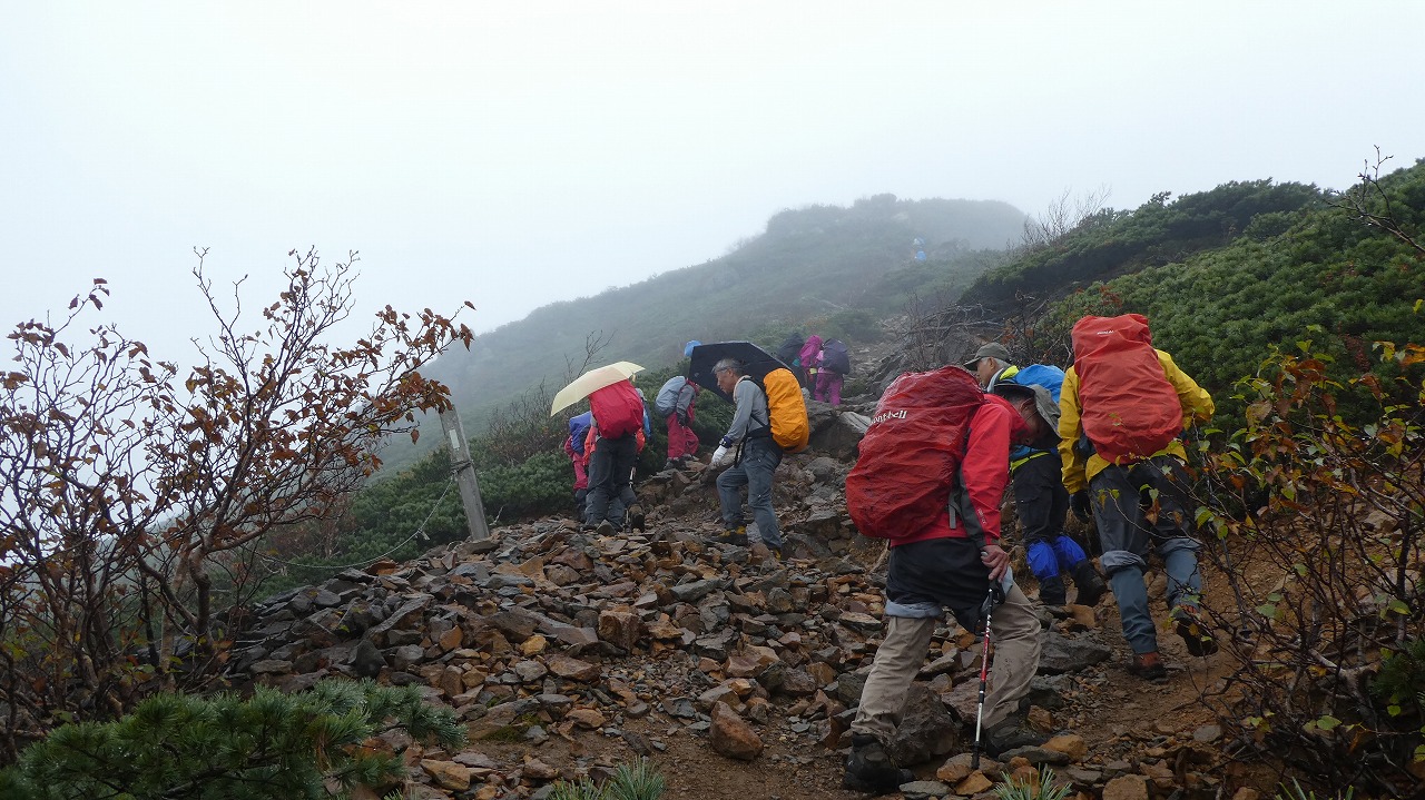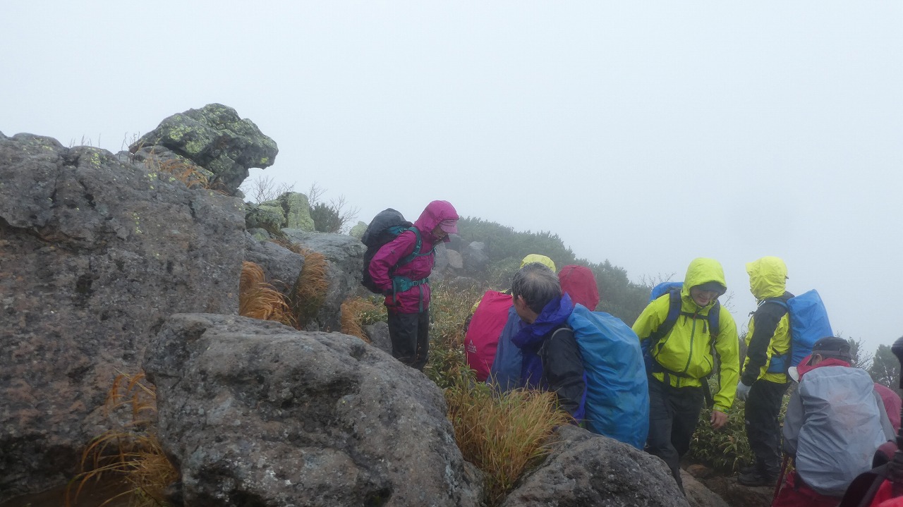 山川L・坂寄L・加藤Lの連携、パーティーの結束力に引っ張られ無事に完登できました。山頂からの見晴らしはありませんでしたが、荒天の中、皆さんと楽しく登れたことが一番の思い出です。