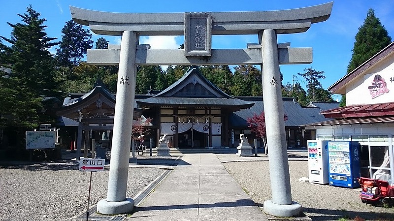 石鎚神社成就社大鳥居と左に「登山口」の案内板(登山前日に撮影)