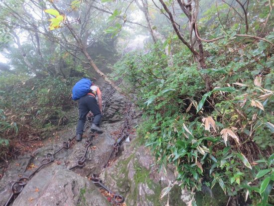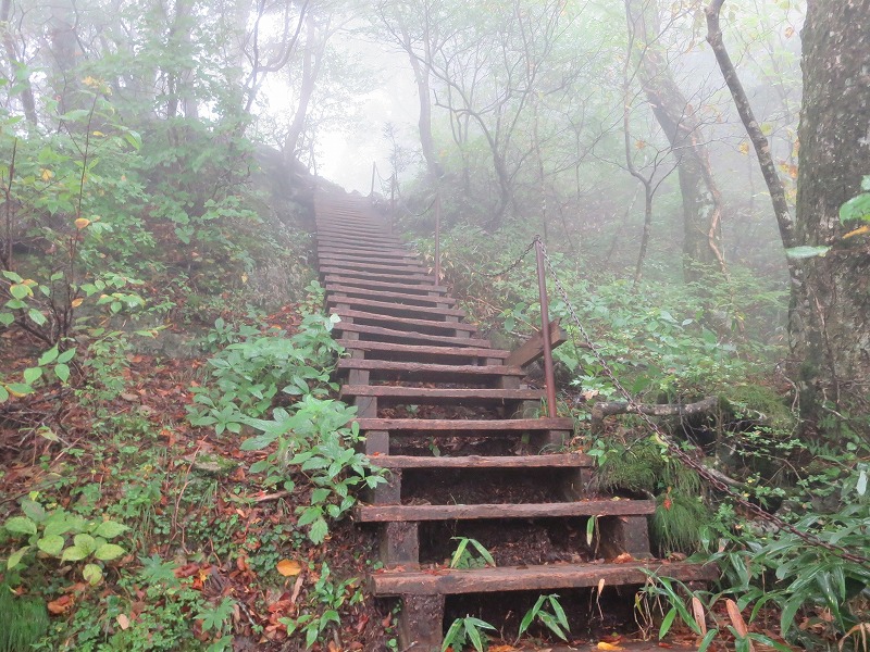 石鎚山の特徴の・・・?階段とクサリ場。雨に濡れたクサリ場は危険。