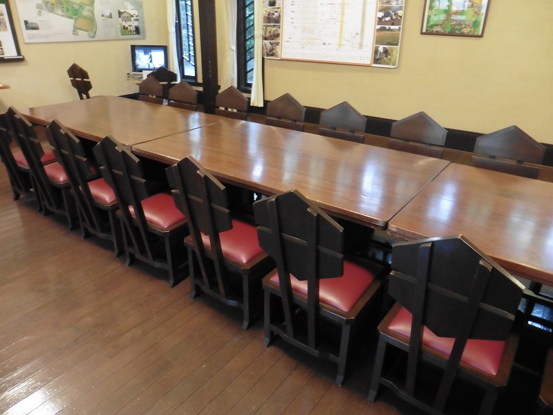 食堂 外光を取り入れた幾何学的な装飾 ホール 礼拝をしていた部屋