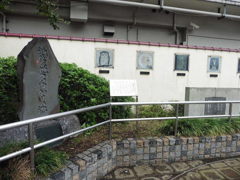 メトロポリタン口から徒歩3分程、元池袋史跡公園内に池袋の名前の由来を記した石碑。昔このあたりに多くの池があり、池袋の地名はその池から起こったと伝えられているそうです。