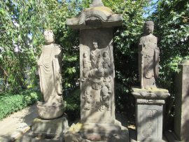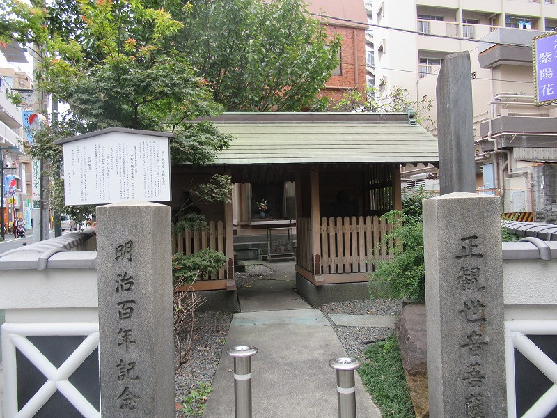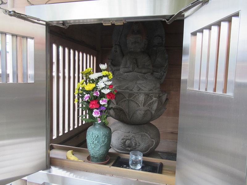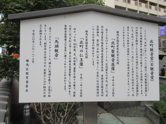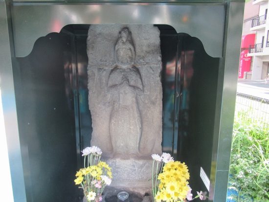 天和2年(1862)銘の聖観音坐像は台座を含めて270㎝で練馬区最大の石像です。