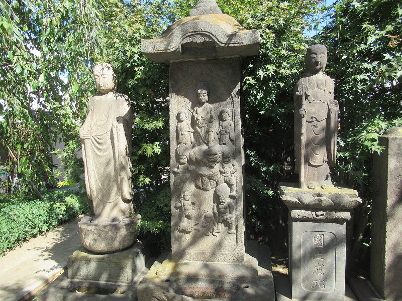 境内には高さ3mの石造地蔵菩薩坐像や庚申塔があります、どちらも板橋区の有形文化財に指定サれています。
