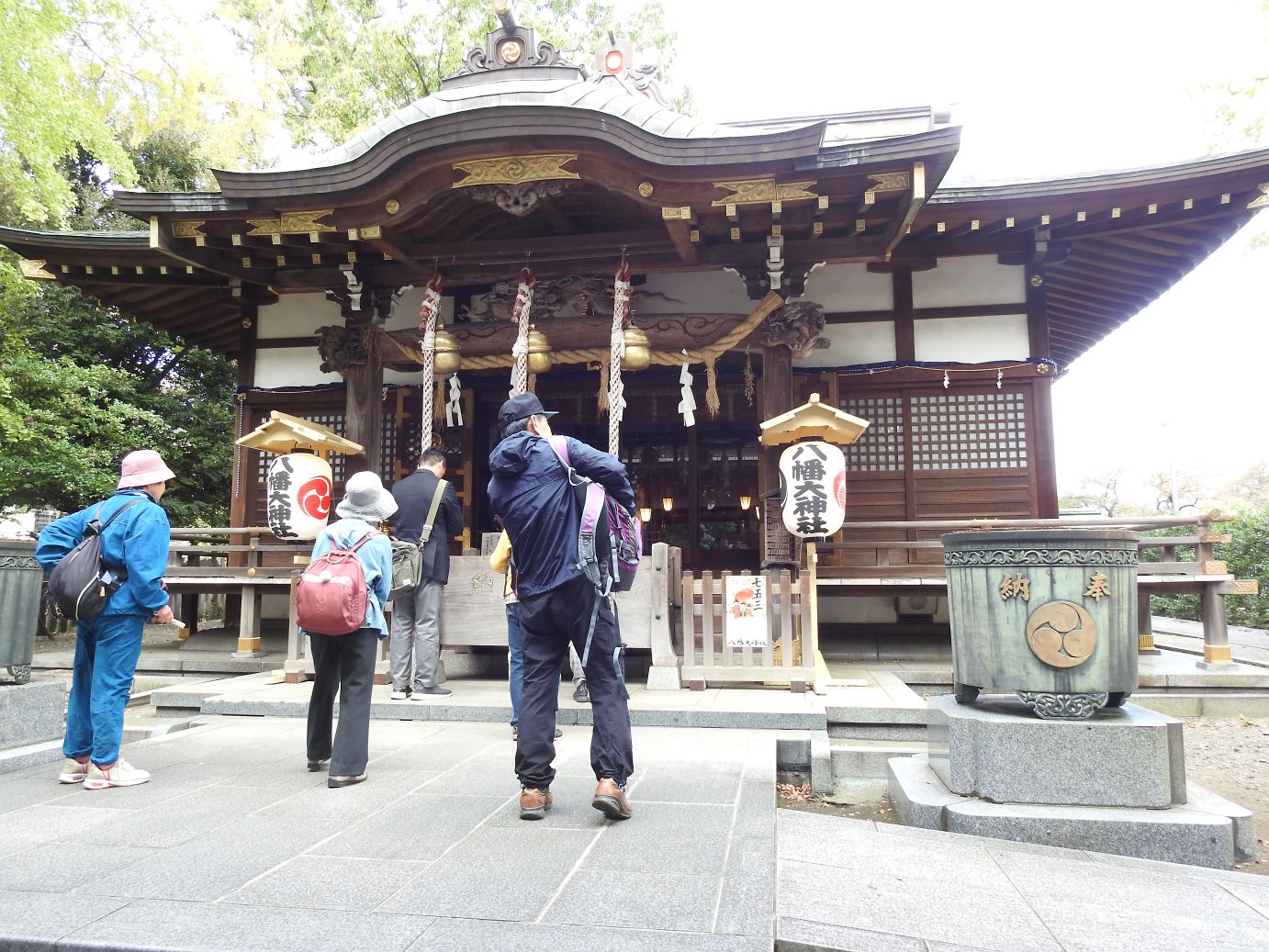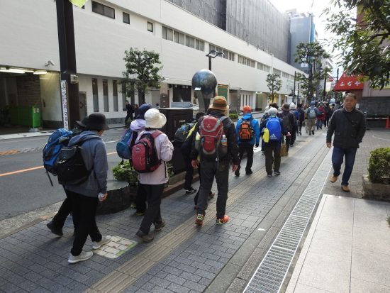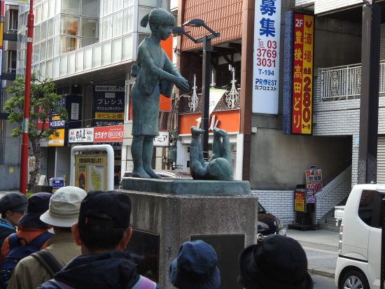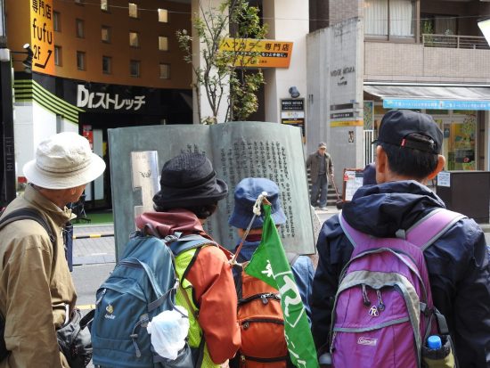 三鷹駅南口 9:00集合 9:10 出発→中央通り→赤とんぼ碑→本のレリーフ→みつめる少年像→八幡神社→禅林寺→むらさき橋→山本有三記念館→万助橋→東ハイ祭会場11:20着 2時間10分