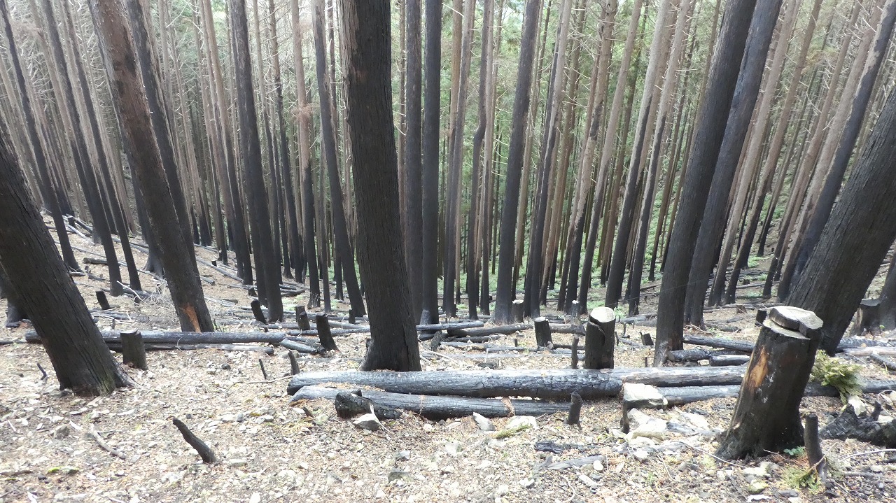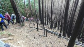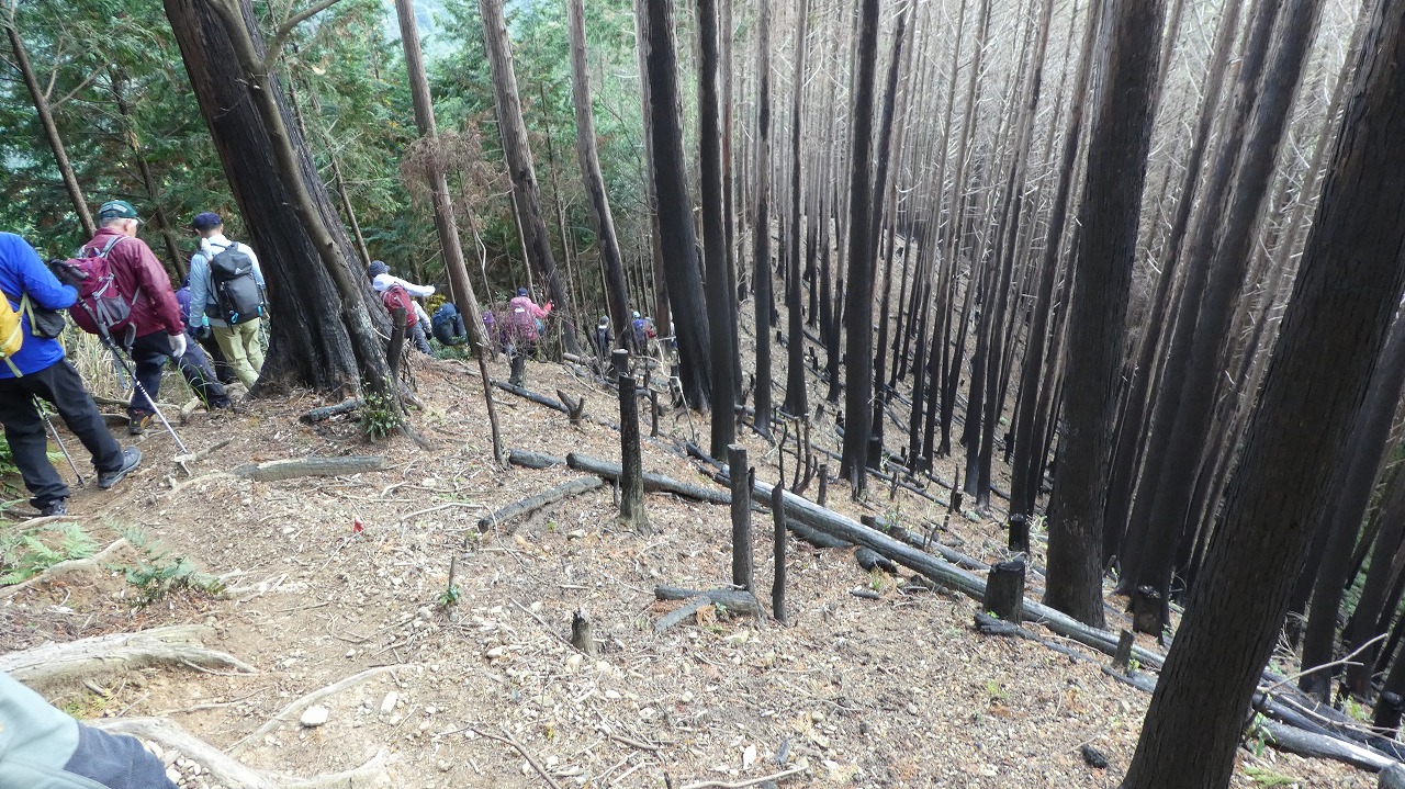 「奥武蔵らしいコースをどのピークも外さずに歩く。天覚山を過ぎて山火事の跡地に遭遇。今年3月