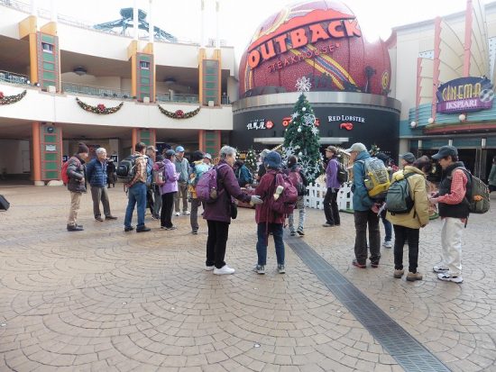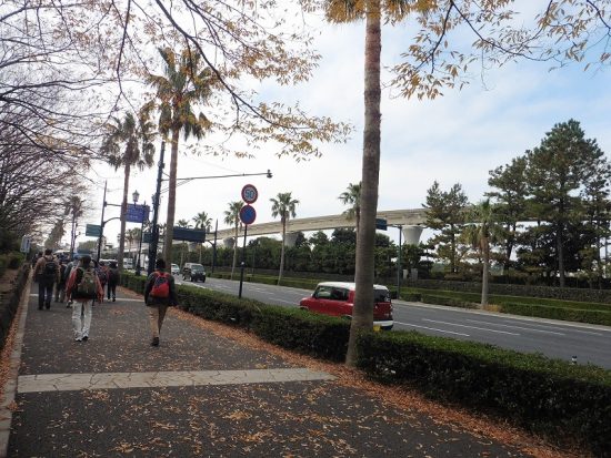 JR京葉線舞浜駅(10:30)→ディズニーリゾートライン乗車→イクスピアリ(ショッピングモール)→浦安市運動公園(11:46~12:30)→高洲太陽の丘公園(13:18)→高洲中央公園(13:48)→高洲海浜公園(14:09)解散=新浦安駅へ(バス&徒歩)