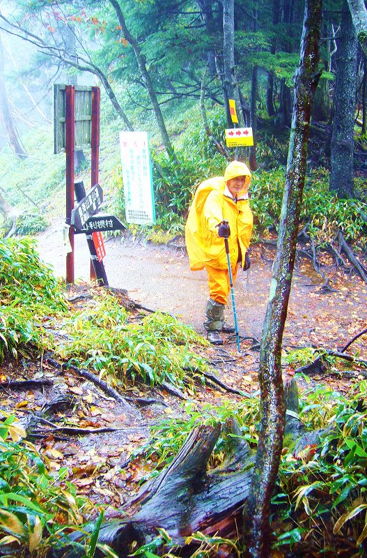 風雨強く休めない13:25 –直下の急登60’ (古来 庚申講、修験道に利用されてきた信仰の山です