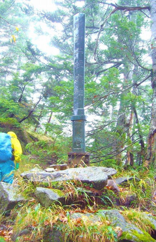 二等三角点と山名標柱の建つ2144m 14:35〖下山開始〗—- 15:20〖コルから緊張する
