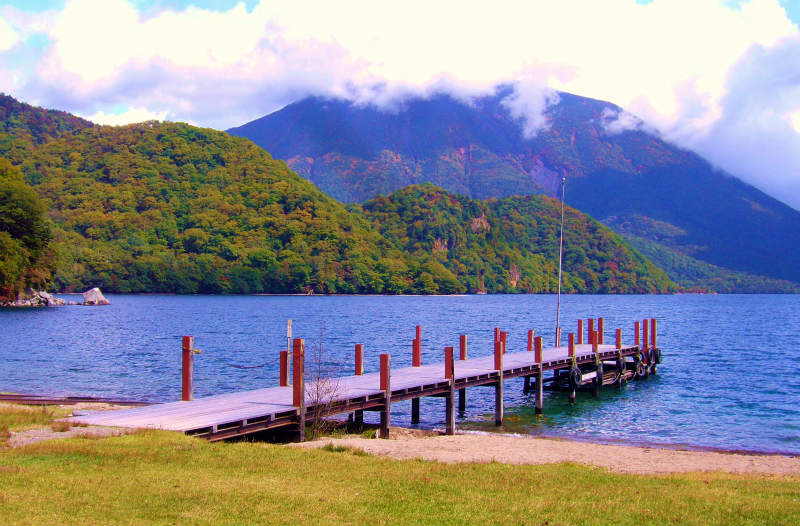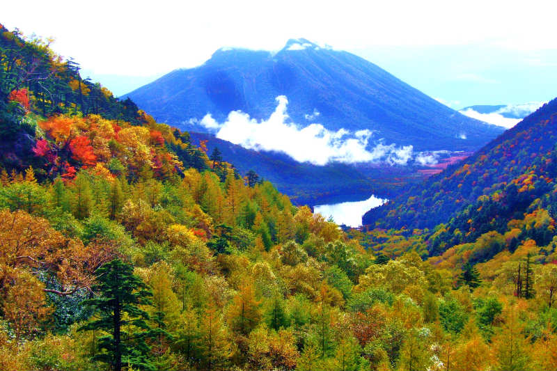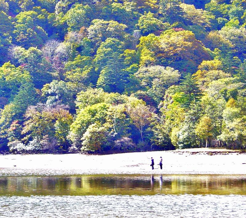 千手ヶ浜の紅葉と この8月の社山と大真名子山そして黒檜山を眺めて中禅寺湖左岸を歩き