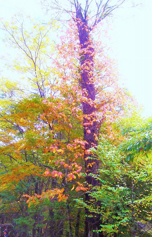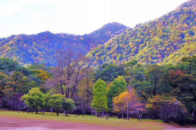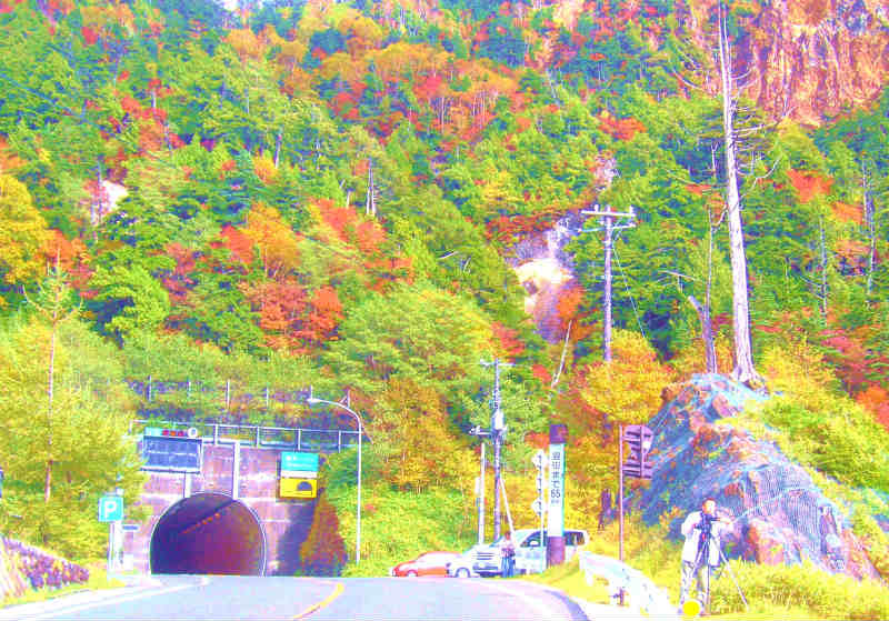 朝食7:30 出発8:25 =金精トンネルを抜けると青空が見え始める 紅葉が一段と5日前の