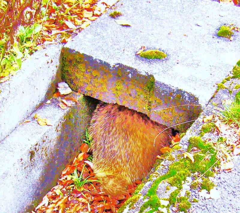 - 11:33 ハクビシンが側溝へ逃げ背を出している