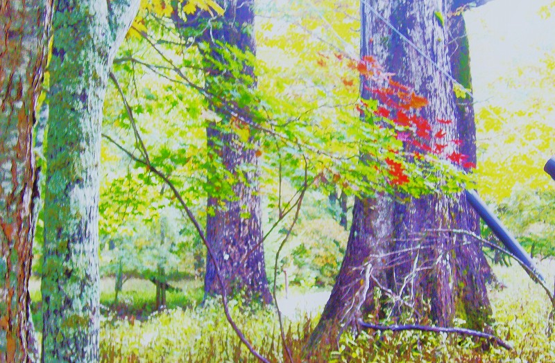 丸沼ダム見学時より赤くなり始めている =赤沼車庫9:19 -9:22 低公害電気バス発=