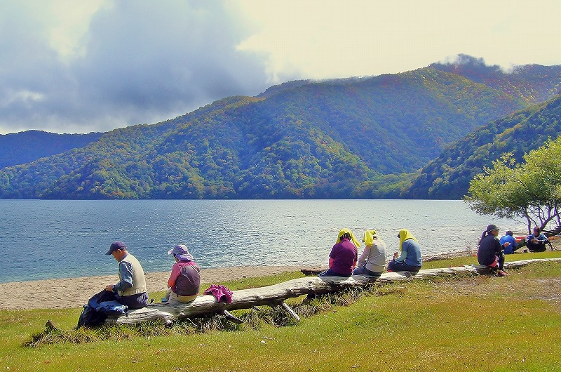 昼食にする 12:30中禅寺湖左岸をハイク–1h25′-竜頭の滝13:55-14:25=東武日光駅15:15-