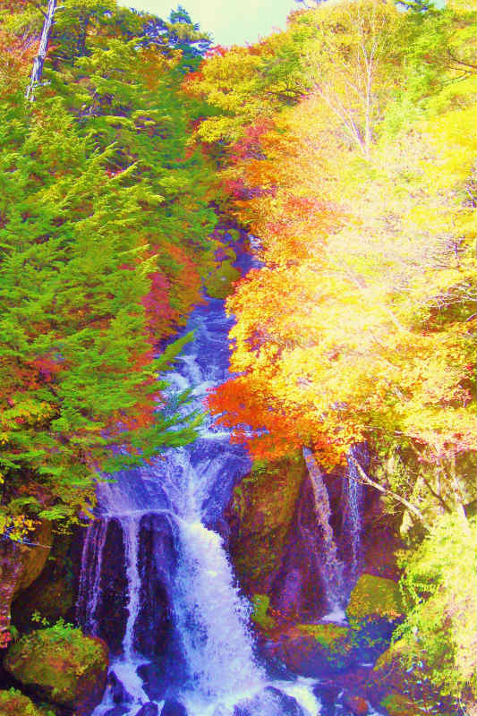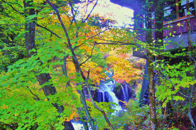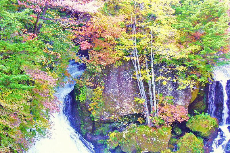 竜頭の滝の紅葉見物で満足しました。鹿に出会うシロヨメナが鹿が食べないのでシロヨメナしか