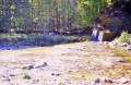 中間点1600m 12:19 -12:24—〖二俣の支流を右に入ると、増水した沢の急な登りが続く。
