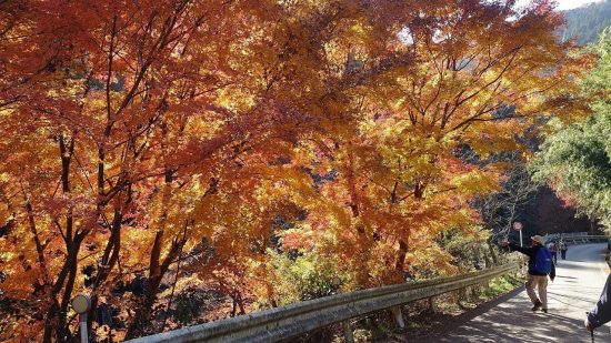 取付点 直ぐの紅葉 この道を下って小仏バス停